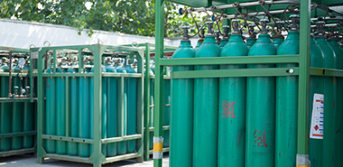 气瓶全部采用免拆卸使用新型安全瓶帽,每只气瓶粘贴有气瓶可追溯系统二维码,方便气瓶管理;气瓶充装前全部做抽真空处理,大力推广使用气瓶散装格吊装运输装卸气瓶,提高安全系数,降低工人劳动强度。